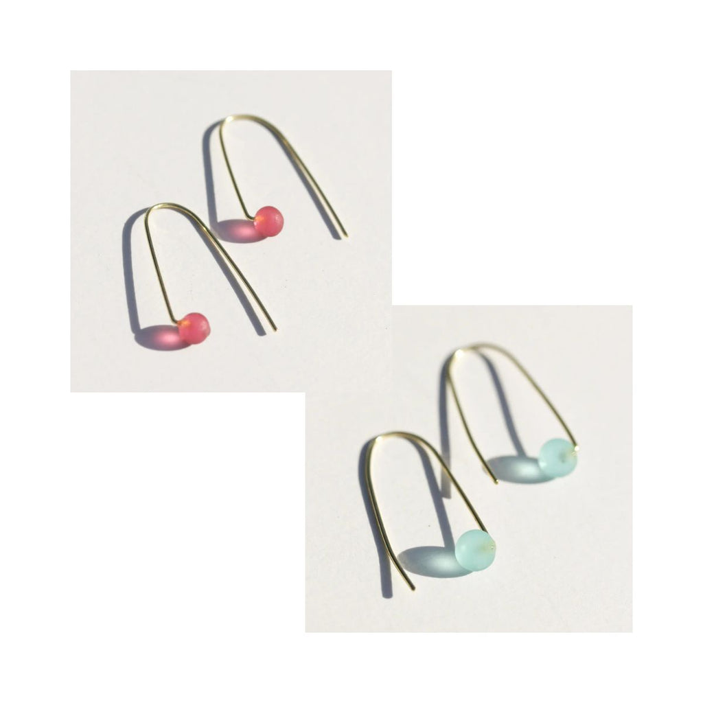 Light, coastal, and quietly beautiful, the Sea Glass Threader Earrings by Rover & Kin bring a touch of the shoreline to your everyday look. Frosted glass beads in soft, sun-kissed hues thread through the ear in a minimalist design that feels effortless from morning to evening. Available in two colourways, Aqua and Rosé.