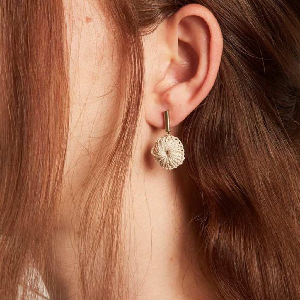 Simple, striking, and full of meaning, the Bar Earrings by Bilum & Bilas bring a modern edge to traditional craftsmanship. Each earring features a delicately handwoven natural fibre disc suspended from a sleek metal bar — a subtle statement piece that honours both heritage and contemporary design. Crafted by women artisans in Papua New Guinea using rapa, a natural plant fibre similar to sisal, every pair carries the story of skill, culture, and connection.